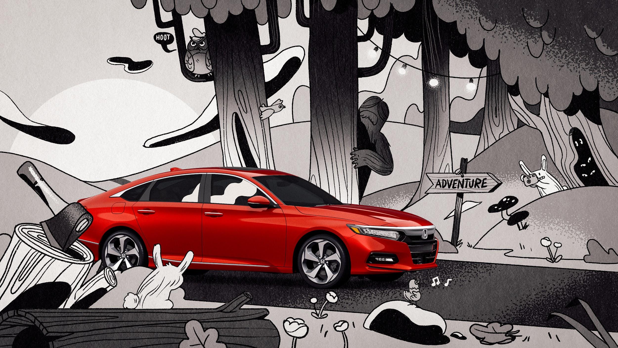Mixed media design frames inspired by old timey cartoons. Part of a pitch for the 2021 Honda Accord